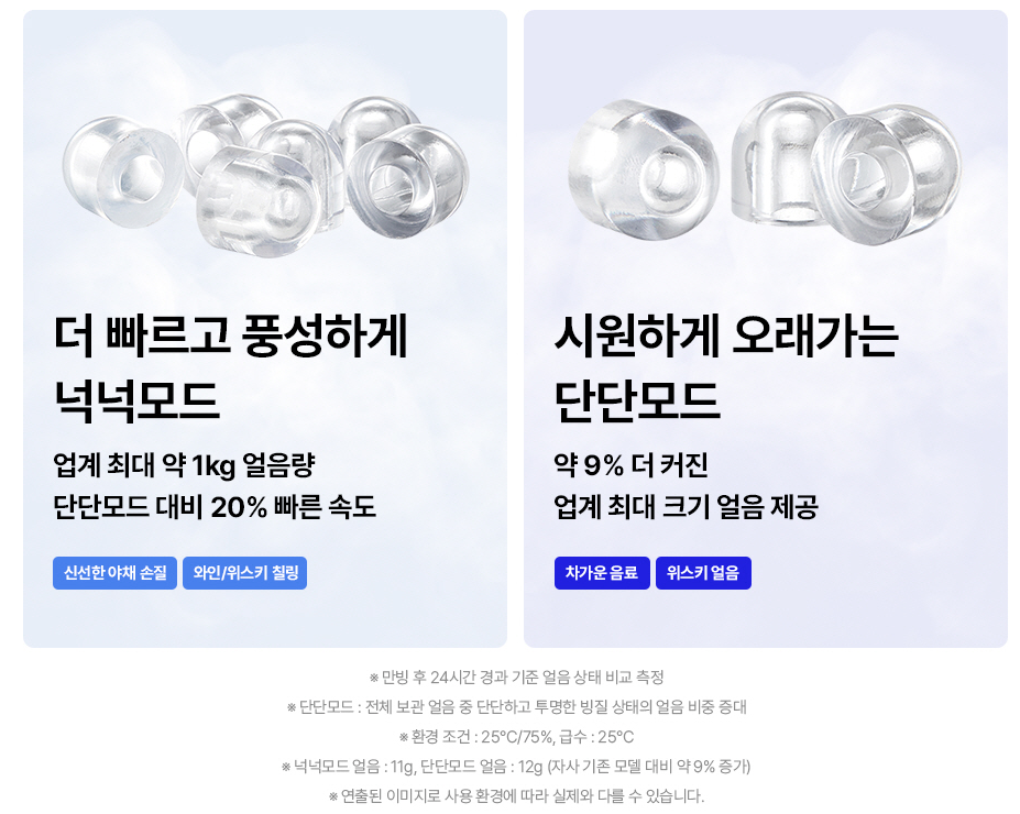 맞춤형 얼음 타입을 선택해